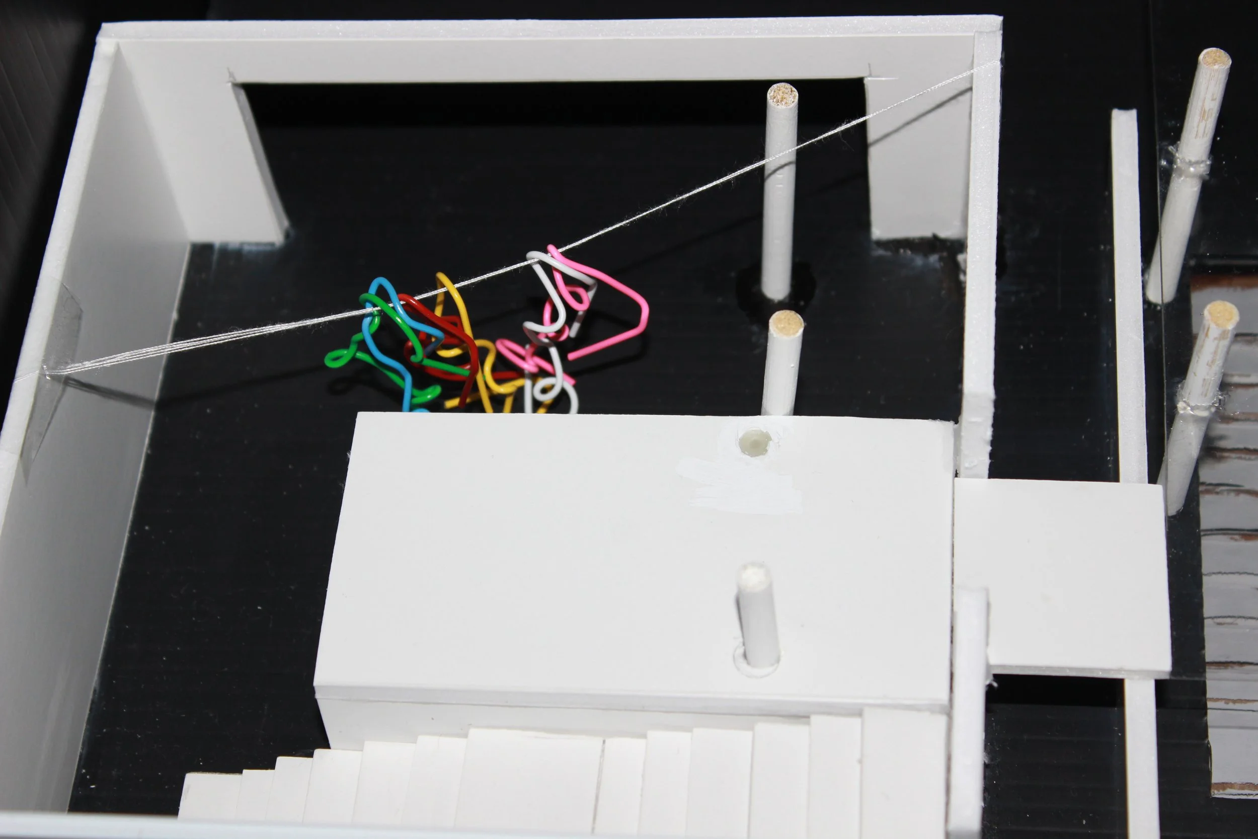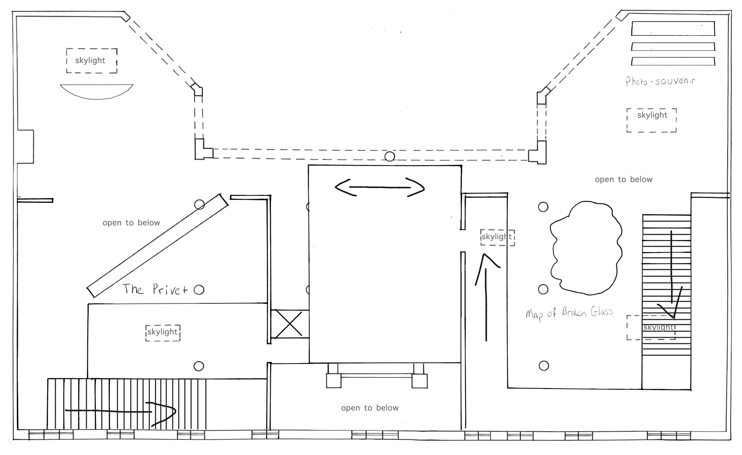 My design process started with researching the site and applying some ideas to the site. After the research, I moved into the concept sketch phase by drawing some preliminary ideas about the gallery space. I applied the concept to an actual diagram, then I moved into a build phase with the artwork to include in the model. I got a feel of the space by moving around the artwork in the concept space.